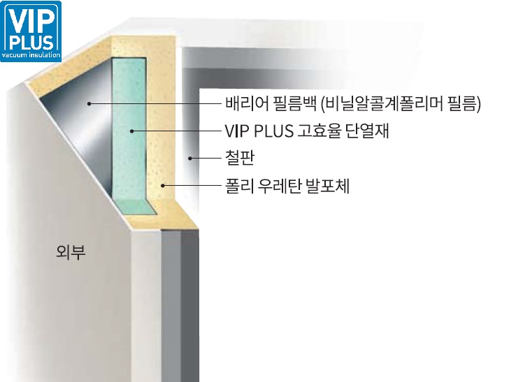 | 단열재 | 경질 발포 폴리우레탄 + 진공 단열재(VIP PLUS:15 mm) |